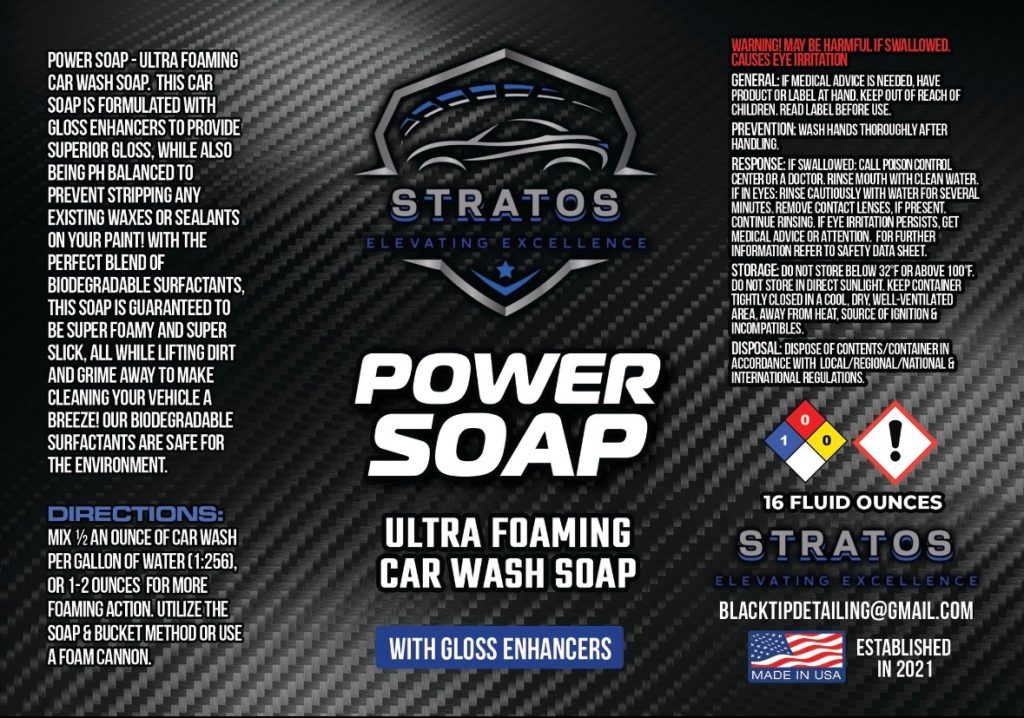 Stratos Power Soap is a powerful yet safe concentrated wash formula engineered to cut through heavy dirt, grease, salt, and road film without stripping wax or protective coatings. It creates thick, ultra-slick foam that lifts contaminants away from the surface, reducing the risk of scratching during washes. Ideal for cars, trucks, boats, and even commercial vehicles, Power Soap delivers a deep, safe clean and rinses off effortlessly to leave a spotless finish every time.